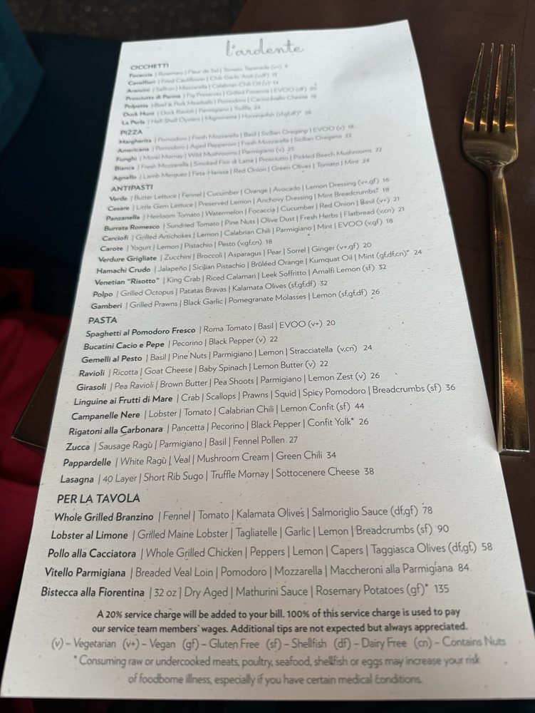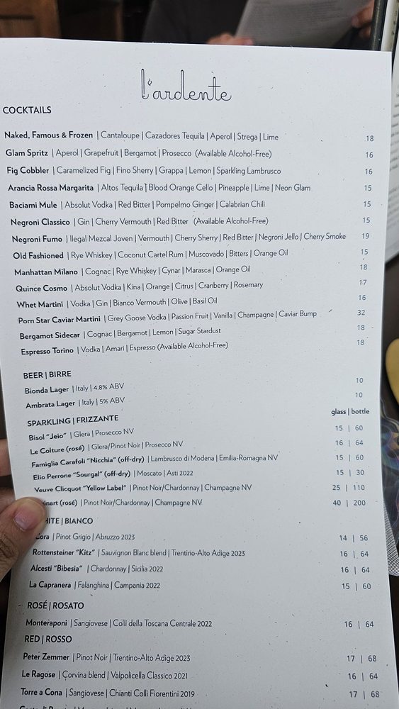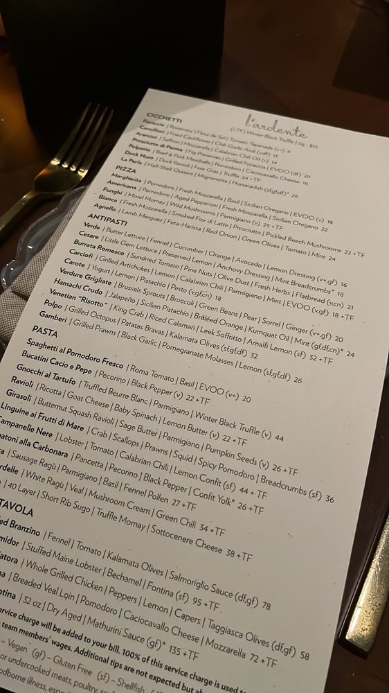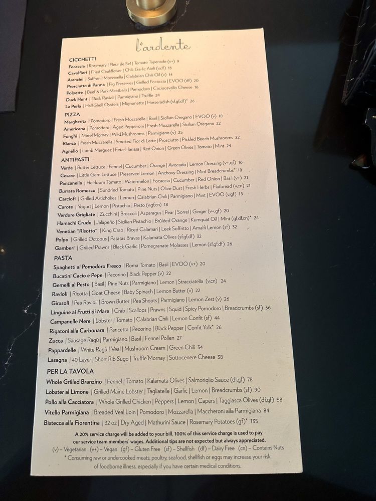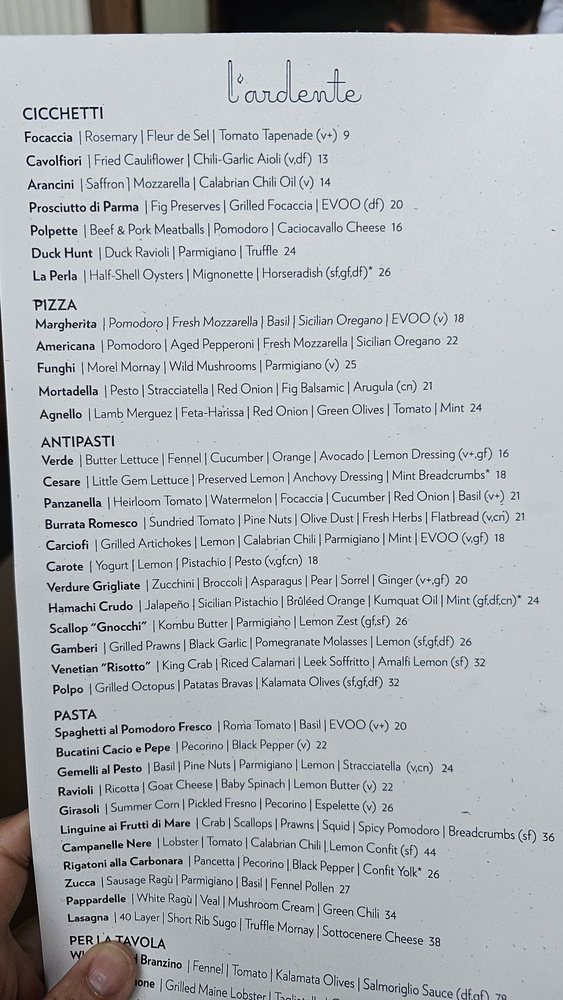 Introducing the menu at L’Ardente, a trendy and upscale Italian restaurant in Washington, DC, offering a variety of options for all occasions. From delicious Cicchetti like the Focaccia Rosemary and Polpette meatballs to mouth-watering pizzas such as the Margherita and Agnello, the menu is diverse and full of flavor. Antipasti choices like the Verde Butter Lettuce and Carciofi Grilled Artichoke provide fresh and unique options for starters. The signature 40-layer lasagna has received rave reviews for its lightness and perfect balance of flavors. With options for vegan, vegetarian, and gluten-free diets, L’Ardente caters to a wide range of preferences. The classy and intimate ambiance, combined with attentive service, makes dining at L’Ardente a truly memorable experience. Make sure to try the famous lasagna and delectable focaccia for a dining experience you won't forget.